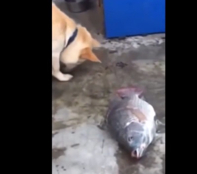 Пес пытается спасти рыбу!