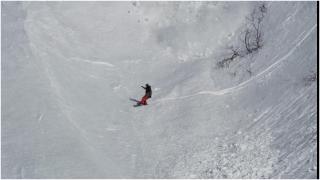 Ловкий заяц перебегает снежную лавину